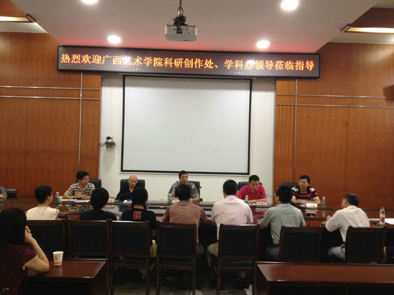 随后,根据两校科研创作与学科对口支援协议框架,特别是根据贺州学院科研管理部门提出的相关艺术学科科研创作工作的需要,科研创作处和学科办人员分别结合自己的工作以圆桌形式给贺州学院全体艺术学科教师作了专题讲座。刘新处长重点谈了艺术作品参加各级各类展览的体会,对贺州学院艺术教师参展层次选择等提出了意见与建议;林盟初副研究员详细介绍艺术学科可申报的各级各类科研项目类别特点,特别是重点介绍全国艺术科学规划项目和国家艺术基金项目的简介、资助方向、资助重点等,并应贺州学院艺术学科教师的要求,提出双方在科研项目合作的问题上提出意见与建议;陶义美老师着重围绕着美术学科建设作了详细情况介绍,对贺州学院美术教师在学科建设上提出了意见与建议;吴国伟老师对国家艺术基金系统填报的具体问题做了详细介绍。随后,还与贺州学院教师所关心的科研创作方面问题进行交流。